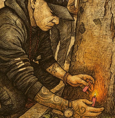 Acreditamos no poder dos gestos simples, como o fogo de uma vela acesa diante do concreto: pequenos rituais de resistĂȘncia que mantĂȘm viva a alma de quem carrega propĂłsito.